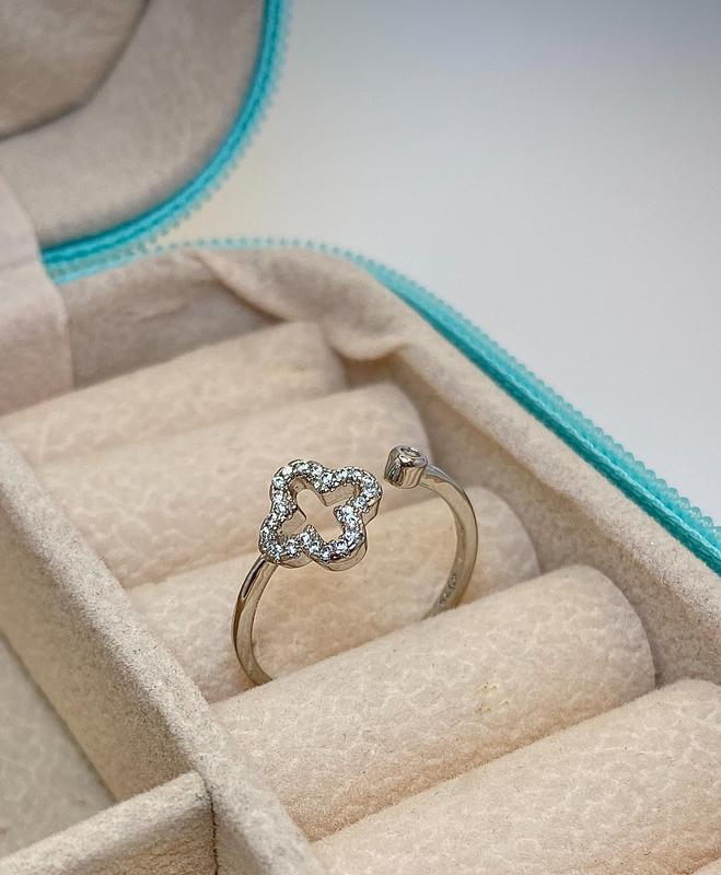Срібна каблучка Клевер із цирконієм Розмір - регулюється Матеріал - срібло 925 проби, має пробу , покрита родієм,не темніє Замовлення відправляється в подарунковій коробці При замовленні від 700 грн доставка безкоштовна Ціна 350 грн