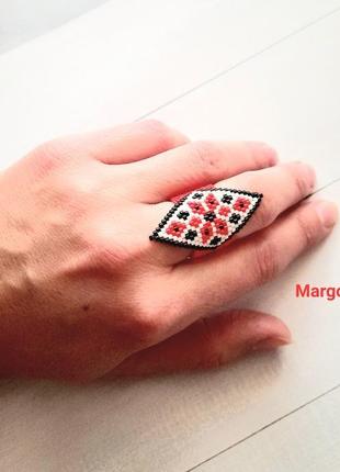 Розкішний перстнь-вишиванка підкреслить Вашу індивідуальність і стиль! Виготовлений з японського циліндричного бісеру Miyuki Delica та японської нитки Miyuki. Розмір 18. Можливе виготовлення у іншому розмірі. Додаткові характеристики: Матеріал: Бісер Товар виготовляється на замовлення