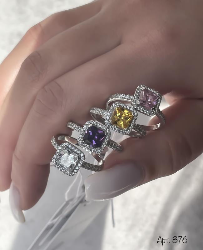 Доступні до замовлення у кольорах: - прозорий - жовтий - рожевий - фіолетовий • срібло 925‘ • фіаніти • середня вага каблучки 2,55 грами • середня вага сережок 2,66 грами • застібка на сережках - затиск