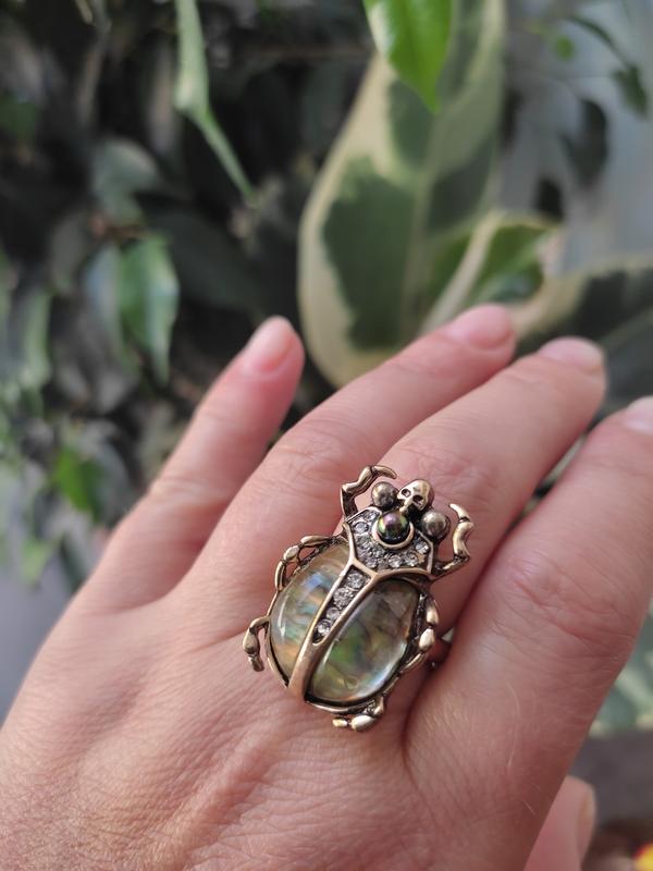 Модный кольцо с жуком в позолоте.Диаметр жука 3 см,размер 17,5. Качественная бижутерия.
