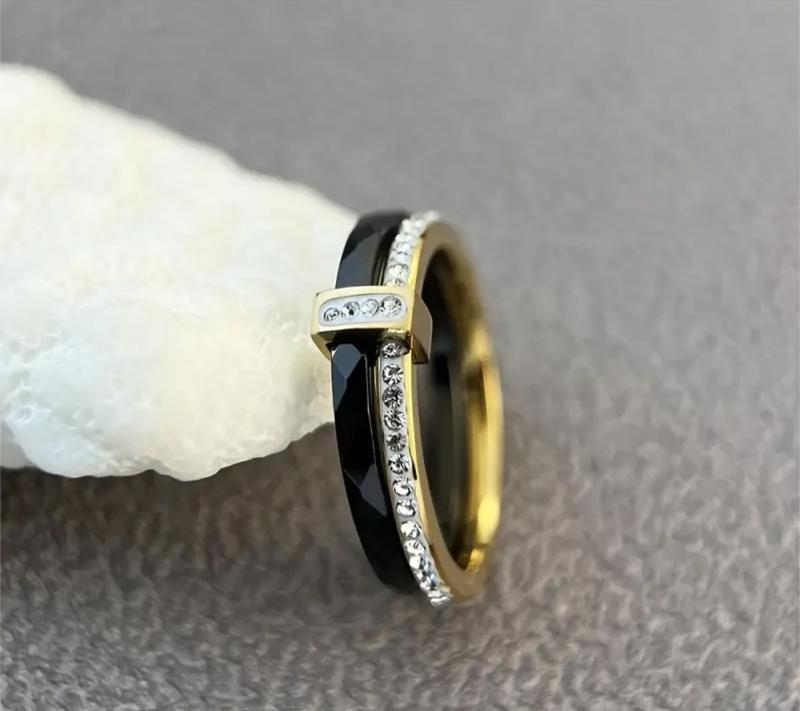 Елегантний та класичний стиль. Чорна , керамічна , подвійна каблучка з камінчиками