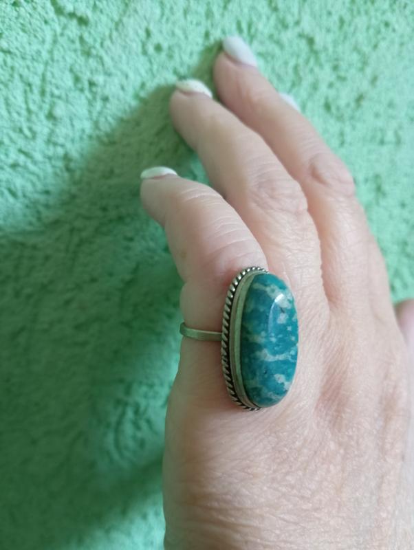 Каблочка с ярким амазонитом, размер около 16р. Винтаж.Мельхиор.