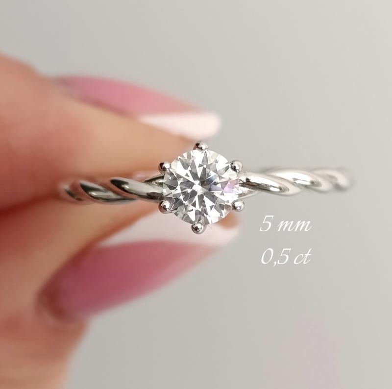 Срібна каблучка з муасанітом 0,5 ct. 5 мм 18 розмір, сертифікат (219156729)