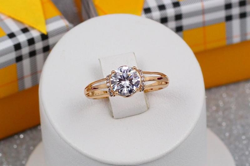 Кільце Xuping Jewelry три смуги тримають фіаніт золотисте розмір 16 висота 13 мм діаметр каменю 7 мм love-shopping