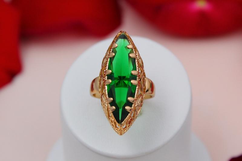 Кільце xuping jewelry маркіз із зеленим каменем р 16 золотисте love-shopping