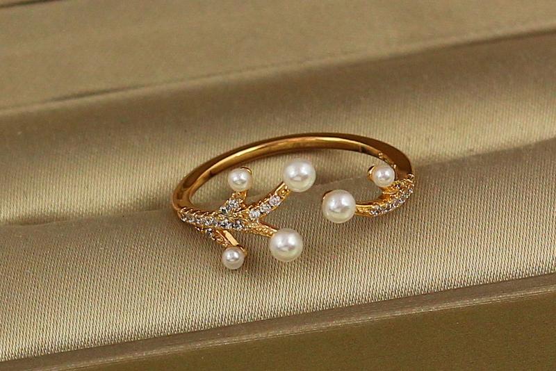 Кольцо Xuping Jewelry реснички с жемчужинками раздвижное золотистое размер 18+ love-shopping