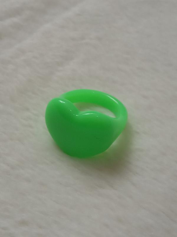 Кільце з сердечком яскравого салатового, зеленого кольору Діаметр близько 1,6-1,7 см