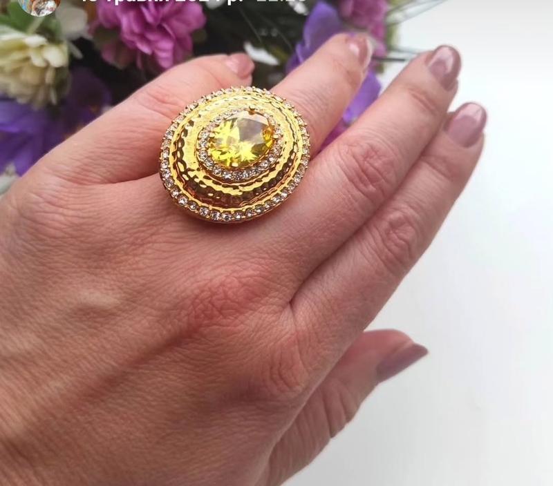 Ефектна каблучка від Rachel Zoe з центральною вставкою лимонного кольору та кристалами Нова розмір 17,5-18 маркування присутнє