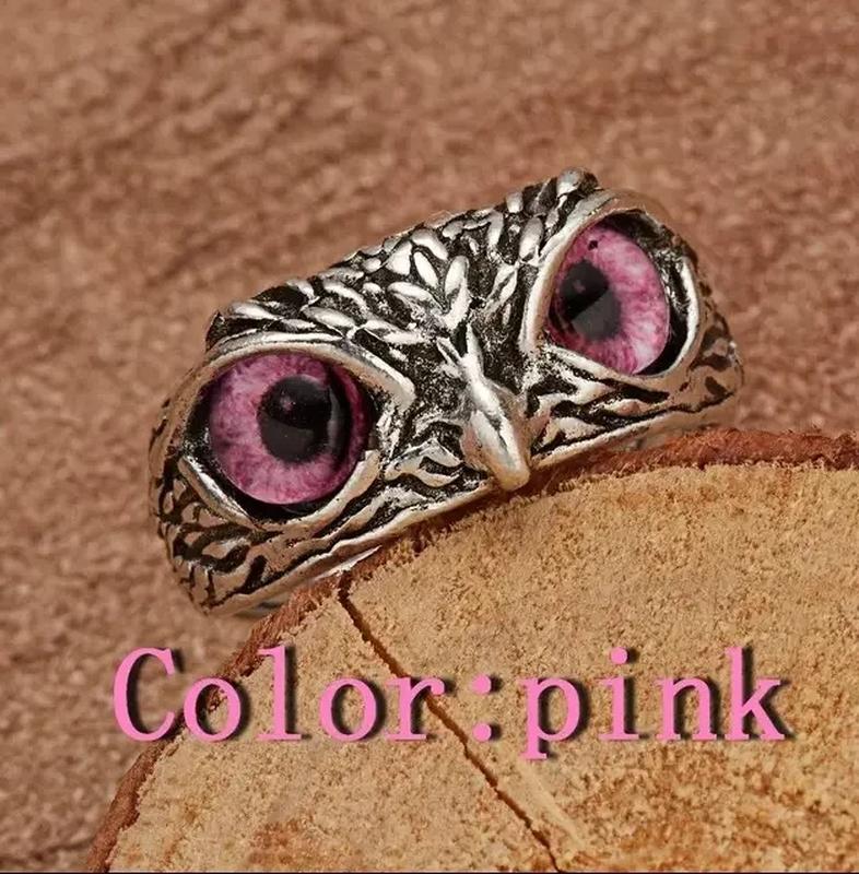 Срібляста каблучка у вигляді совеня з червоними та рожевими очима розмір реголюється