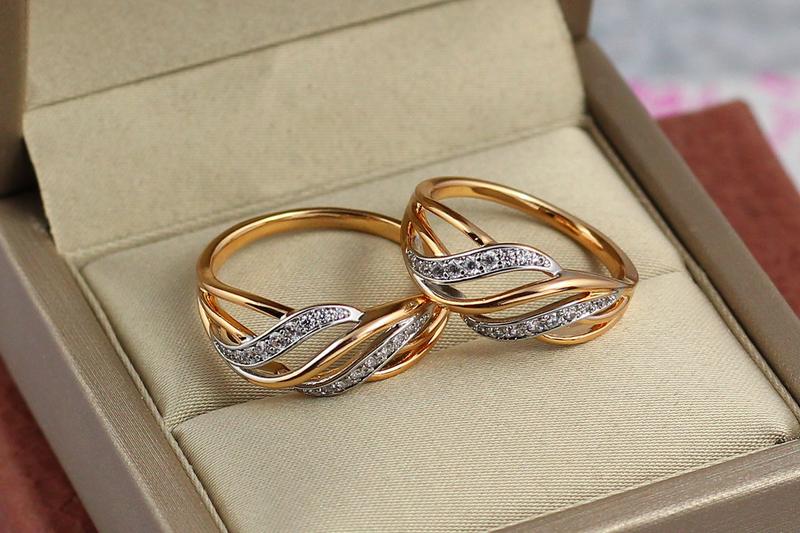 Кільце xuping jewelry з родієм поперечні хвилі р 18 золотисте