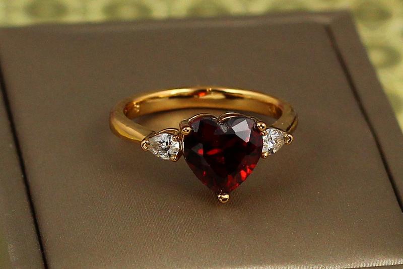 Кільце Xuping Jewelry серце з червоним каменем і краплями з боків золотисте розмір 16 висота 10 мм