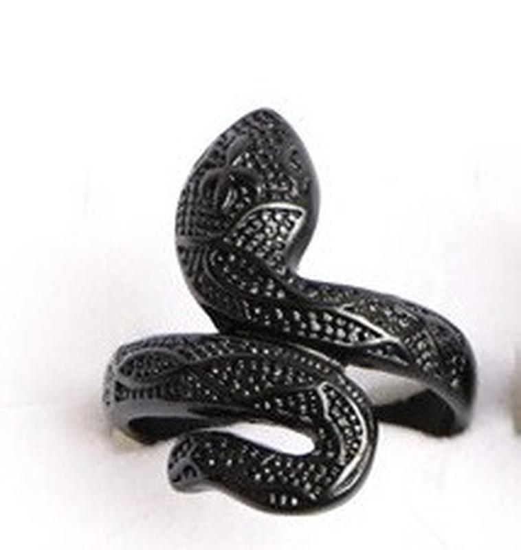 Чорна каблучка у вигляді змеї з універсальним ( реголюючим) розміром