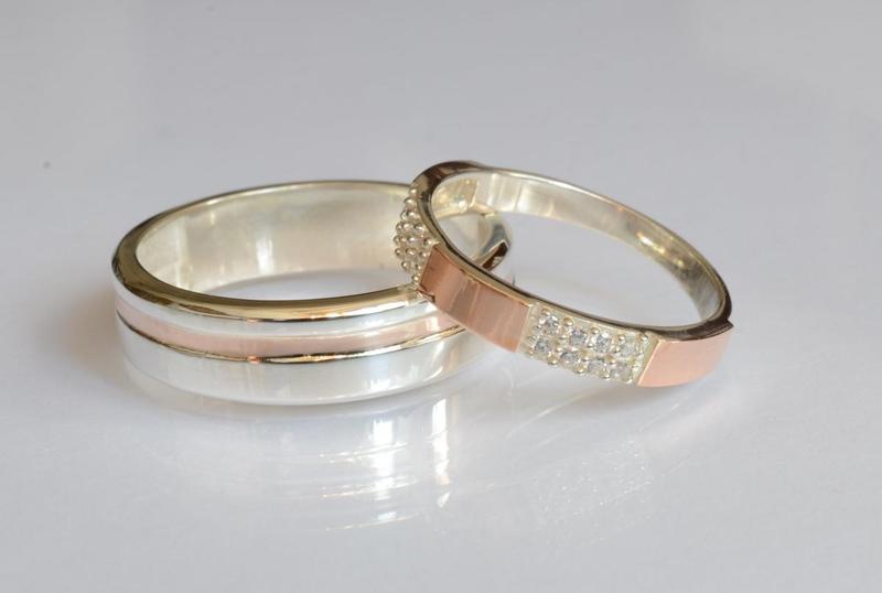 Характеристики: - Производство: Украина - Вид изделия: пара обручальных колец - Вес женского кольца: 1.5 г - Ширина женского кольца: 3 мм - Вес мужского кольца: 4.5 г - Ширина мужского кольца: 5.5 мм - Материал: серебро 925 проба, золото 375 проба - Размер женского кольца: 15-22 - Размер мужского кольца: 17-23