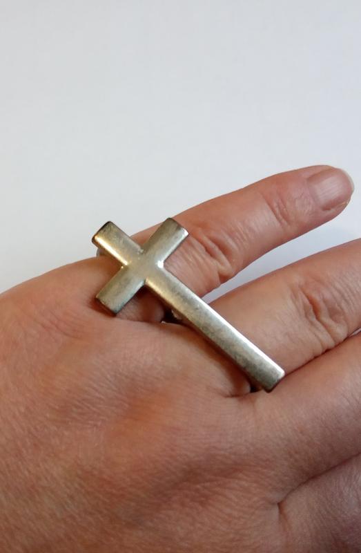 Подвійне стилізоване кільце кільце 18/19 розміру PULL & BEAR хрест 4,5 х 2,5 см. стан нормальний