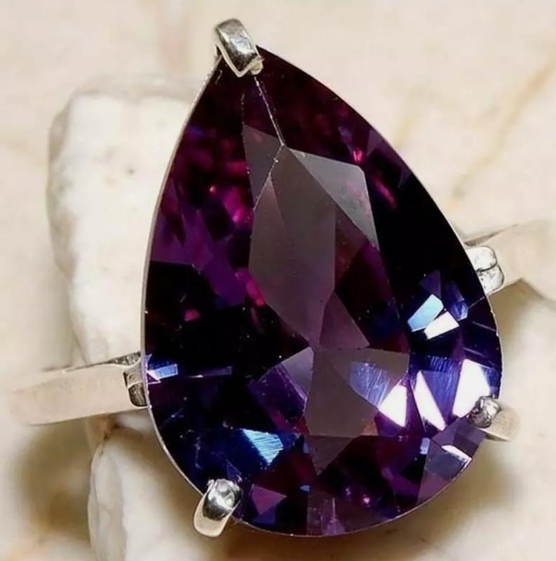 нежное кольцо с аметистом на утонченную ручку, серебрение, проба 925, камень лабораторный размер кольца 18