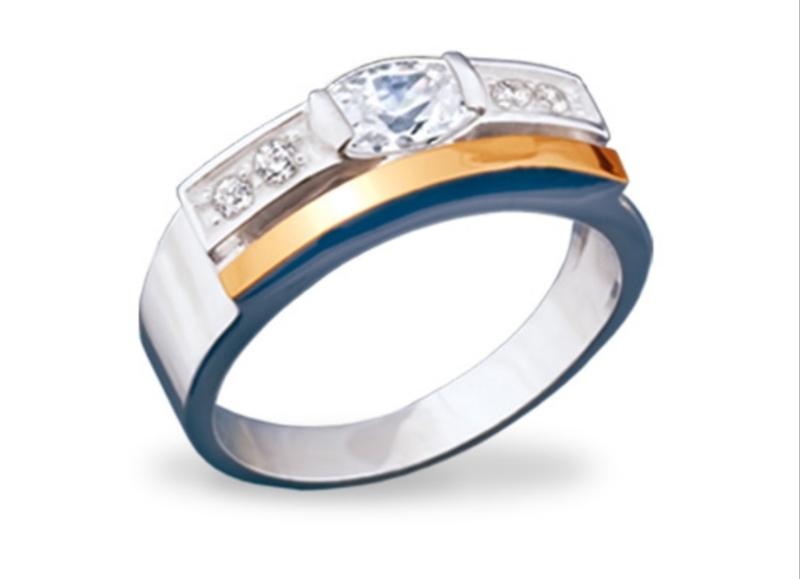 Каблучка Розмір-16,5 Елегантна каблучка з білим фіанітами. Виріб виконаний зі срібла з золотими вставками.