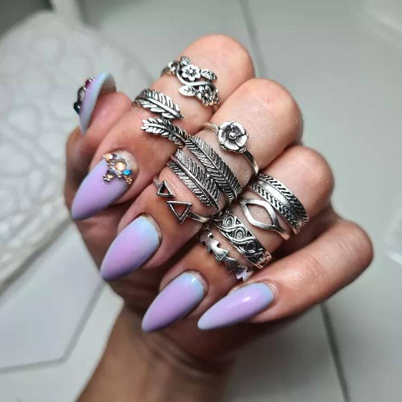 Новий тренд біжутерії-вінтажні кільця на фаланги пальців! У наборі дев'ять кілець: від 14 до 17 розміру, що б можна було носити одновремен на пальцях і фалангах. Склад: бижутерный сплав. Колір: срібло. Ви тільки вдивіться в ці незвичайні обручки! Вони так стильно і красиво виглядають, чи не правда?)