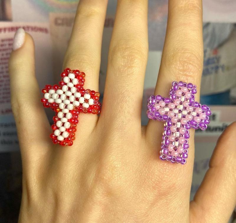 Кольцо крест из бисера. Делаем под заказ по вашим размерам. Можно выбрать другой цвет бисера.