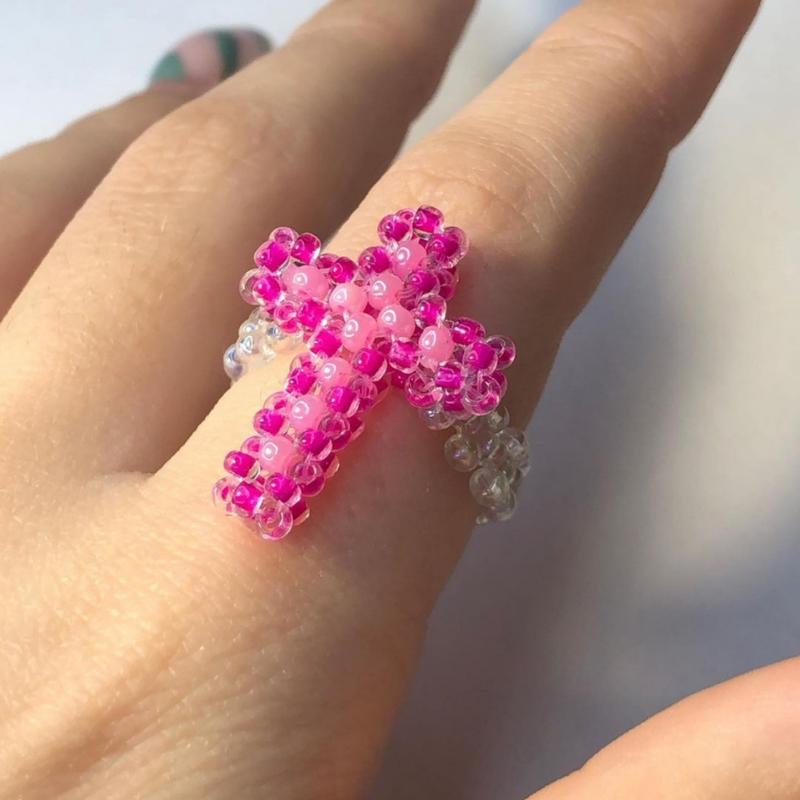 Яркое кольцо из бисера в форме креста. Делаем под заказ по вашим размерам. Можно выбрать другой цвет бисера.