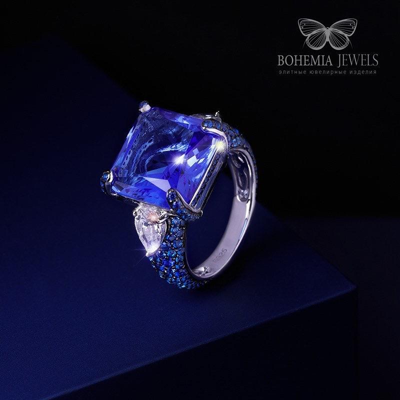 Шикарне люкс кільце кольору сапфір з срібла і родію, італія