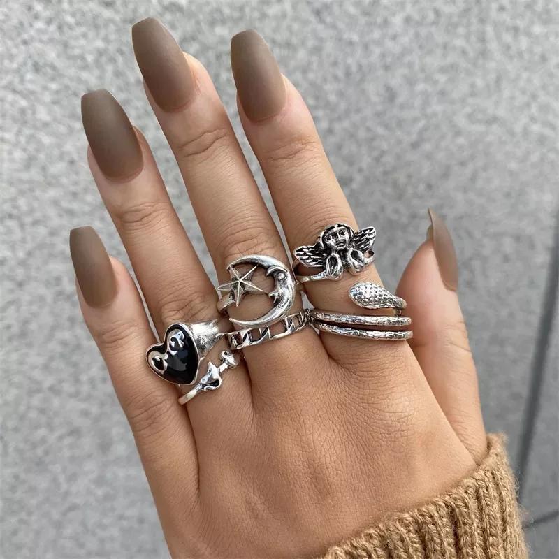 Набір кілець 6 шт кільця в стилі панк рок гот