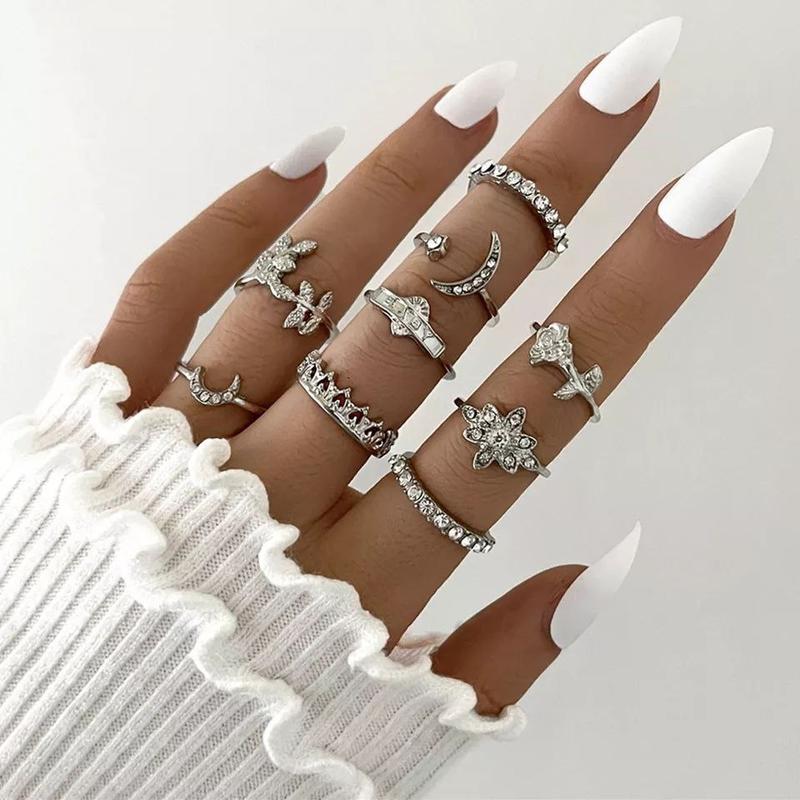 120 грн. Набір колечок з дев'яти штук. Тип металу: цинковий сплав. Колір: срібний. Код 1469.
