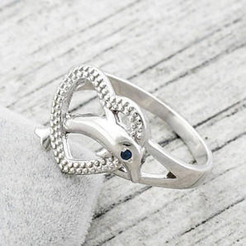 Кільце срібне Дельфін вставка синій фіаніт размер16,5; 18,19.