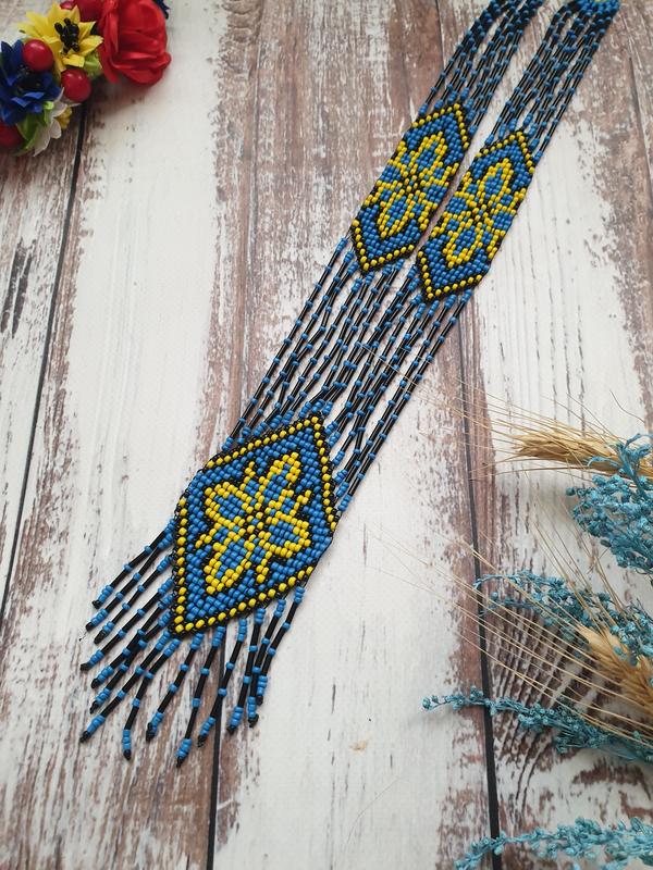 Оригінальна та яскрава прикраса в патріотичних кольорах. Чудово пасує до футболки, сорочки, блузи чи гольфу. Використані кольори: чорний+жовтий+блакитний Довжина - 46 см В наявності гердани в різних кольорах Відправляю Новою поштою та Укрпоштою