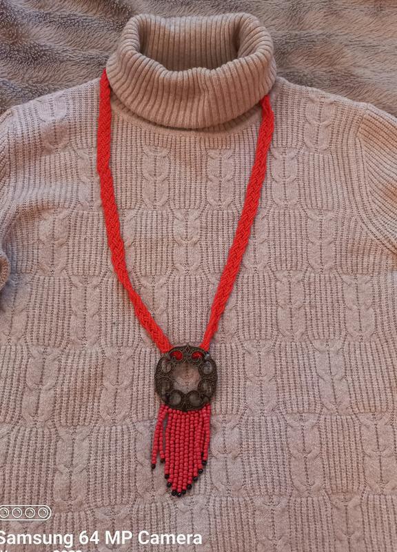 Бусы из бисера сплетенные косичкой. Довжина 82см+удлинение 8 см. Ажурный кулон с бохромой дышит собственноручно, смотрите последнее фото. При желании можно легко отрезать.