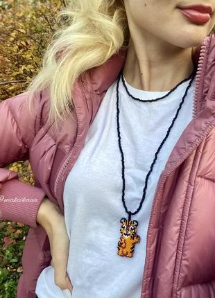 Довге намисто в два оберти з об’ємною підвіскою тигриком.