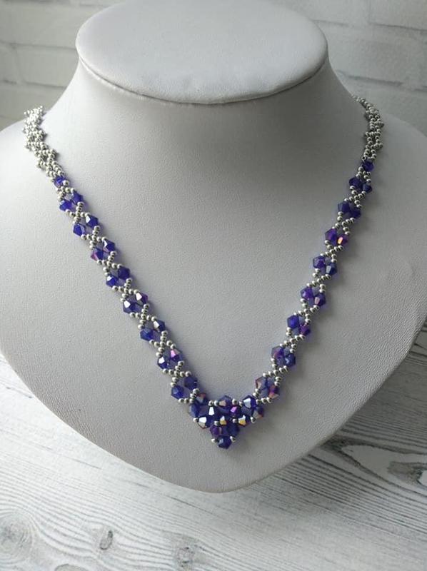 Кольє з бісеру синього кольору
