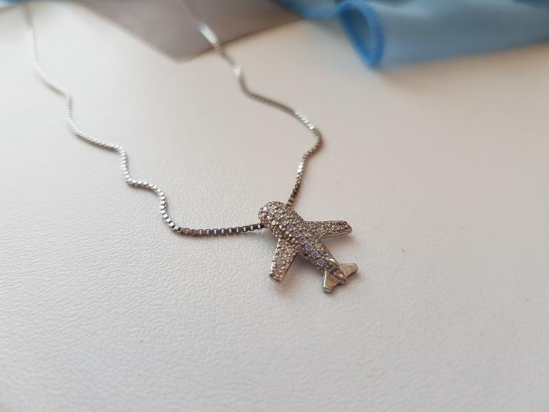 Кольє Літачок Срібло 925 Покрита родієм Довжина регулюється 45 +5 см Вага 2.70 м Вставка камінчики циркони білого кольору Підвіска не сьемная
