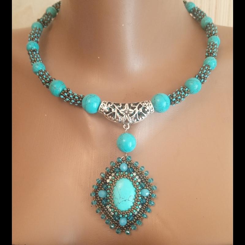 колье з говліту та бісеру на меморі дроту. гарно держе фориу. фурнітура біжутерний сплав. довжина по застібці45см.+8см ланцюжок. розмір підвіски 5х4см.