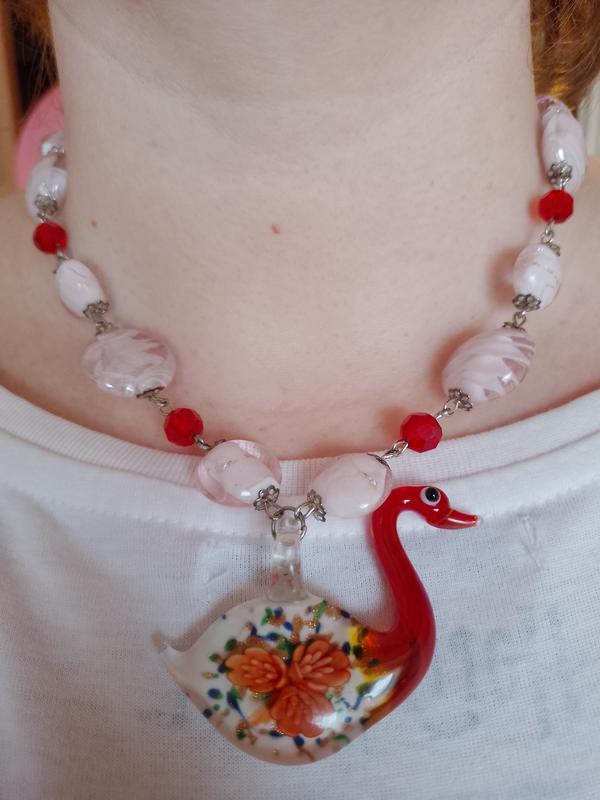 Кольє ручної роботи, муранське скло та кришталь, має ніжний колір та зручну застібку кнопку. Авторська робота.