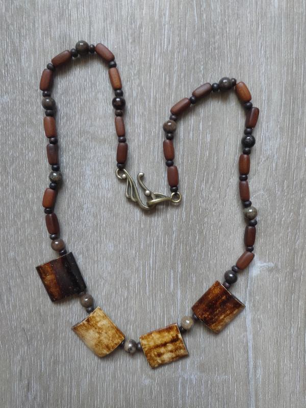 Продам унікальне дизайнерське намисто/кольє в етностилі. Виконано з натуральної слонової кістки, бусин тибетського агату і сандалового дерева. Кожна намистина має своє неповторне забарвлення. Нанизане на ювелірну нитку. В ЄДИНОМУ ЕКЗЕМПЛЯРІ! Довжина із застібкою - 48 см. З усіх питань пишіть - відповім.