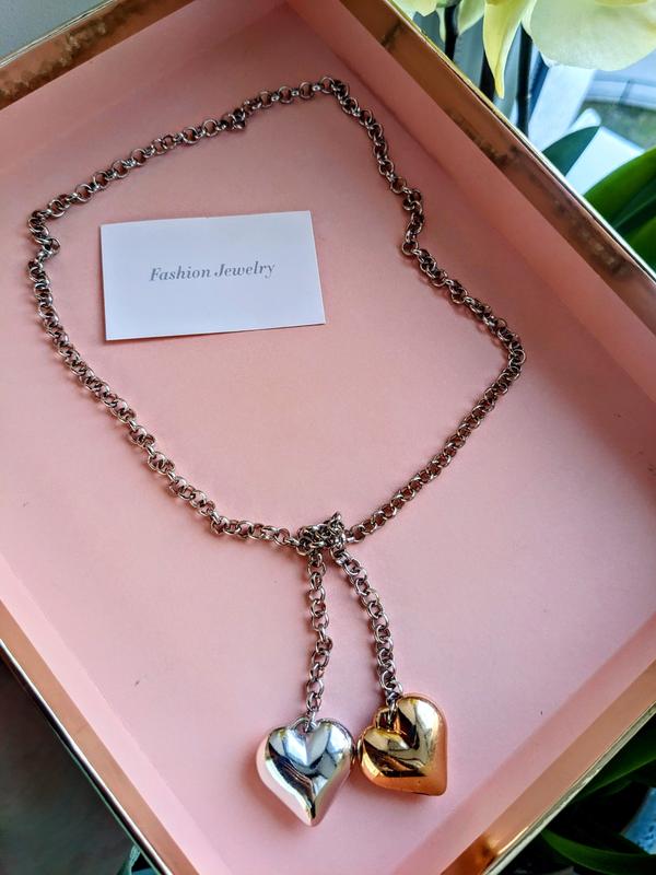 Кулон з двома серцями ❤️ металевий довгий ланцюжок круто доповнить літній ваш образ ✨