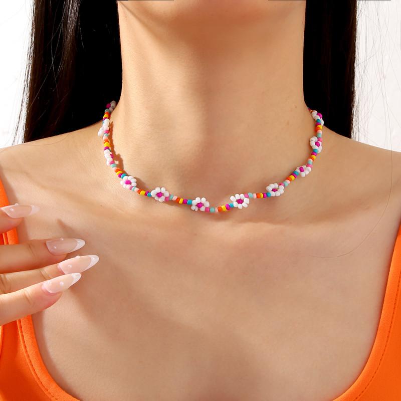 Різнокольровий чокер із бісеру з білими ромашками і регульованим розміром. Довжина прикраси 40 см + 7 см додаткові ланки із ланцюжка, аби можна було збільшити довжину і зробити її довше. Завдяки цьому, підійде на будь який об'єм шиї. Також, в асортименті є інші кольори, як на останньому фото - про наявність інших кольорів, запитуйте перед замовленням! Виглядає яскраво, оригінально і стильно - обов'язково залишитеся задоволені!