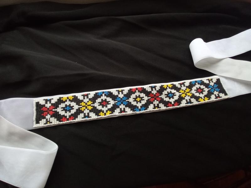 Ґердан із Сокальським орнаментом, Львівська область. Бісерне полотно пришите до білої велюрової стрічки (1 метр) Ціна 1100грн