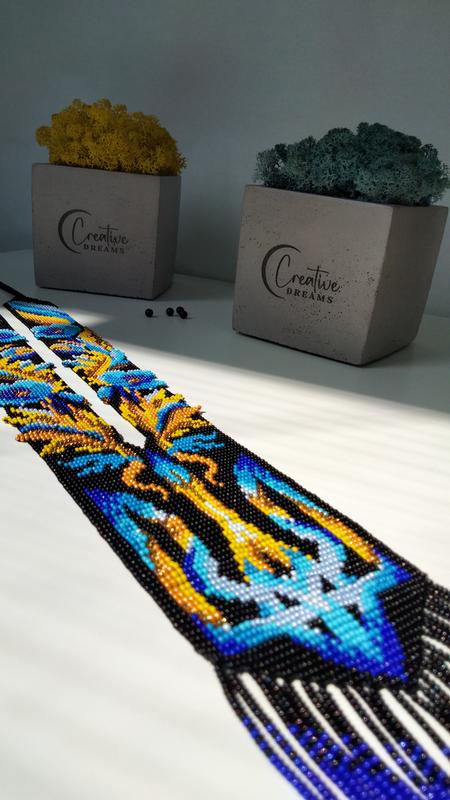 Український гердан ручної роботи, виконаний з якісного чеського бісеру. довжина 55см, ширина 8 см. Можна виконати в інших кольорах під замовлення. Більше робіт є у соціальних мережах Creative Dreams