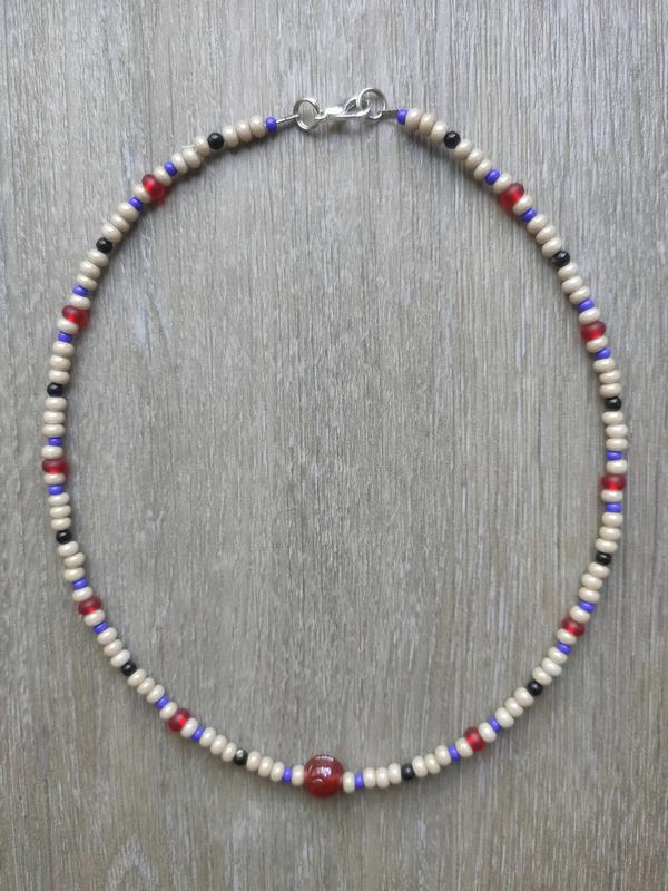 Продам соковитий, стильний чокер з намистин натурального перламутру, намистин муранського скла та чеського бісеру різних відтінків. Нанизаний на ювелірний тросик, застібка – карабін. Розмір намистин перламутру - 3 мм, центральної намистини муранського скла - 10 мм. Довжина - 39 см, можна збільшити розмір за допомогою подовжувального ланцюжка на Ваше прохання або змінити розмір самого прикраси. З усіх питань пишіть - відповім.