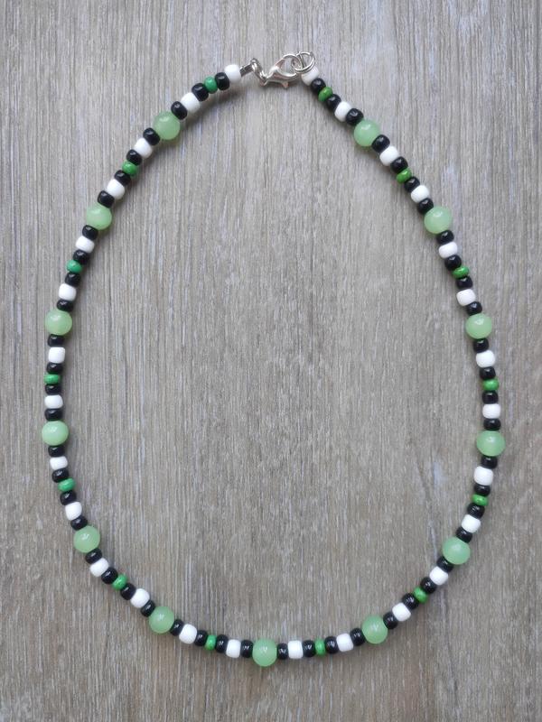Продам интересный, яркий, трендовый чокер из чешского бисера травертин с эффектом "под камень", черного и белого бисера, а также бусин натурального облагороженого оникса (натуральному камню придан более яркий оттенок). Нанизан на ювелирный тросик, застежка - карабин. Длина - 42 см, можно увеличить размер с помощью удлинительной цепочки по Вашей просьбе или изменить размер самого украшения. По всем интересующим вопросам пишите - отвечу.