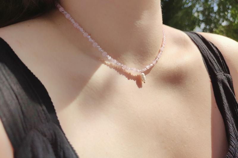 Ожерелье с речной жемчужиной, розовым кварцем, хрустальными розовыми бусинами