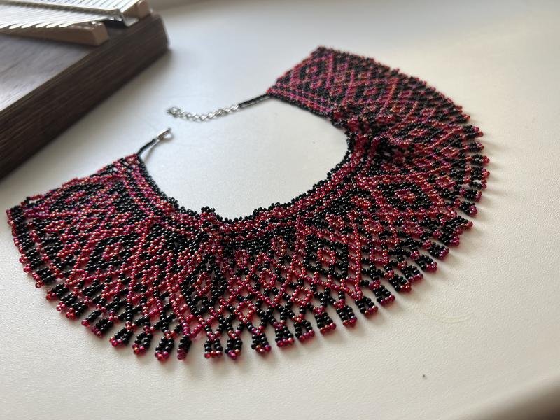 Широка силянка з ромбічним орнаментом ручної роботи. Чеський бісер, застібки з нержавію.