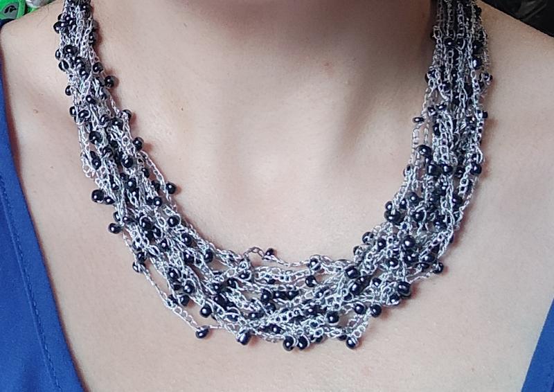 Колье ручной работы очень качественное и красивое, прочная нитка+бусины, плетение крючком