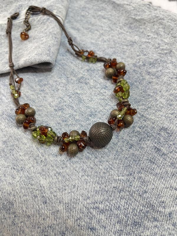 Кольє з бісеру та інших намистин у зеленому відтінку