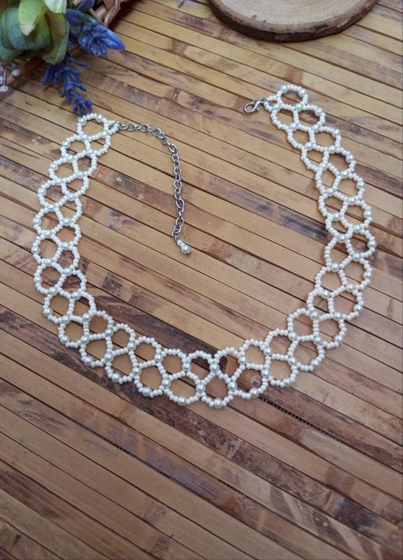 Силка из чешского бисера и бусинок под жемчужины. Длина 34см + 7 см удлинитель Ширина 2 см Цвет бисера и бусин - молочный Ручная работа