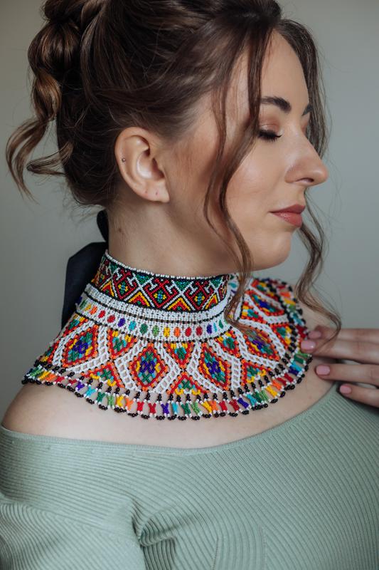 Криза у наявності🥰 Мій особистий рекорд по масштабу роботи побито, тепер ця прикраса зайняла перше місце після червоної кризи) Вага близько 115 грамів, довжина бісерної частини( стійки) 30см+ стрічка завʼязка. Ширина 13,5 см. В роботі використаний чеський бісер і намистини.