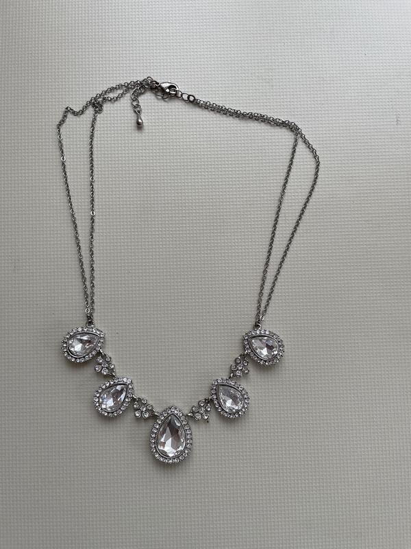 Кольє срібного кольору, з камінням що гарно виблискує! Подвійні ланцюжки, виглядає розкішно. В гарному стані!