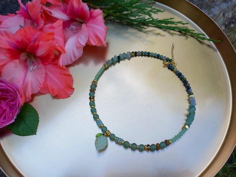 Интересное нестандартное ожерелье с кулоном в форме виноградного грозди из нефрита 🍇 Настирины - стеклянные, авантюрин, амазонит и агат Фурнитура с позолотой 18К Цена ожерелья-550 грн