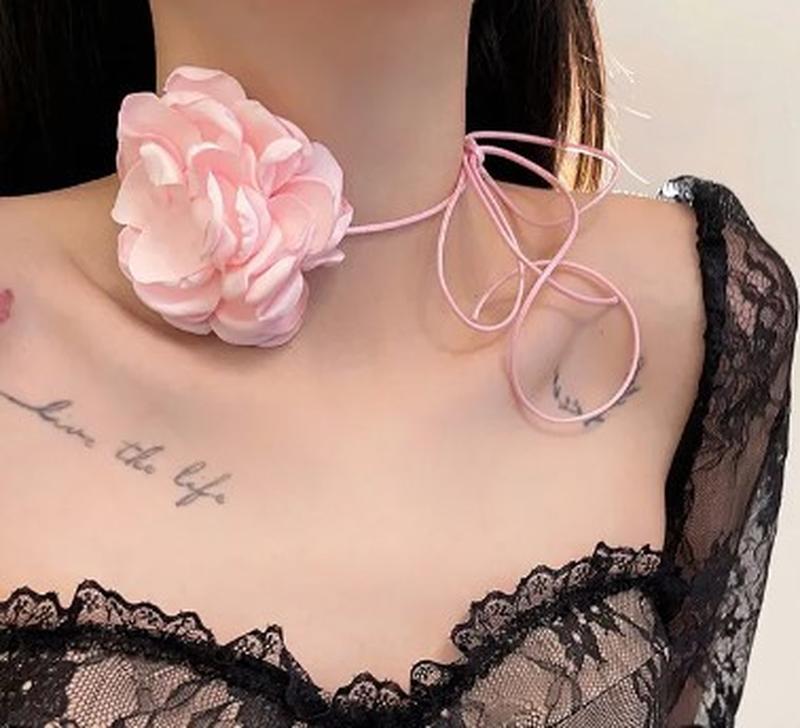 Чокер квітка пудрова рожева, квітка на шею, чокер рожевий троянада